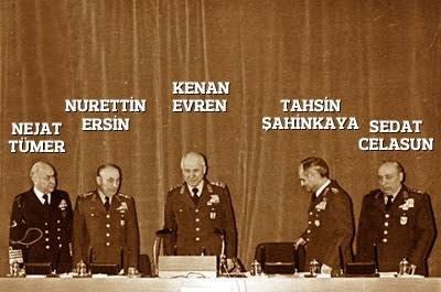 Genelkurmay Başkanı Orgeneral Kenan Evren, Kara Kuvvetleri Komutanı Orgeneral Nurettin Ersin, Hava Kuvvetleri Komutanı Orgeneral Tahsin Şahinkaya, Deniz Kuvvetleri Komutanı Oramiral Nejat Tümer ve Jandarma Genel Komutanı Orgeneral Sedat Celasun’dan oluşan Milli Güvenlik Konseyi’nin, radyodan okunan ilk bildirisinde, “İç Hizmet Kanununun verdiği Türkiye Cumhuriyeti’ni kollama ve koruma görevini yüce Türk milleti adına emir ve komuta zinciri içinde ve emirle yerine getirme kararını almış ve ülke yönetimine bütünüyle el koymuştur.” deniyordu. Bildiri, iç ve dış düşmanlardan dem vuruyor, devletin kurum ve kurallarıyla işleyemez duruma gelmesi, yıkıcı ve bölücü mihrakların faaliyetlerini artırması ve can ve mal güvenliğinin tehlikeye düşmesine vurgu yapıyor; Atatürkçülük yerine irticai ve diğer sapık ideolojik fikirlerin üretildiğinden bahsediyor; bölünme ve iç savaşın eşiğine geldiği tesbitini yapıyordu.