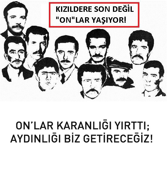 maltepe askeri cezaevinden firar eylemi ile başlayan ve kızıldere’de katliamla sonuçlanan eylemin 37. yılındayız. burada yoldaşlarımızın yiğitçe direnişinden, sağ olarak ele geçirilmek istenmeyişinden, faşizmin bilinçli katliamından söz edebiliriz. bu yıllarca böyle oldu. ve “anısı önderimiz olsun!” diyerek sözlerimizi tamamladık. on’ları unutturmamak, sonraki nesillere on’ların ideallerini aktarmak, ”devrimci düşünceyi ve eylemi yaşatmak ve yaymak”, görevimizdi. bunu yeteneğimiz ölçüsünde gerçekleştirmeye çalıştık.