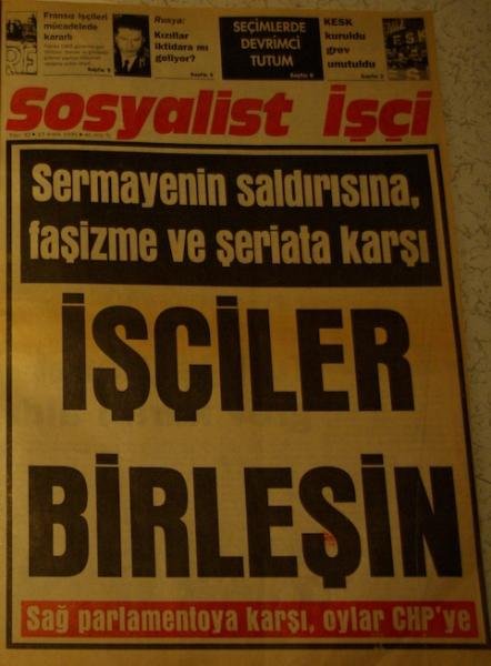 “Seçimlerde devrimci tutum” yazısında “İşçiler ve emekçiler binde 2-3’lük oy oranıyla şeriatçı hareketin ve faşistlerin yenilmeyeceğini açıkça görmektedirler. Bu nedenle, parlamentarist hayalleri bir kenara bırakarak şeriatçı harekete ve faşistlere karşı tek bir blok oluşturmak gerekir. Bu blok, sadece 24 Aralık günü için işçilerin çoğunluğunun oy verdiği yerdir: CHP’dir” deniliyordu.